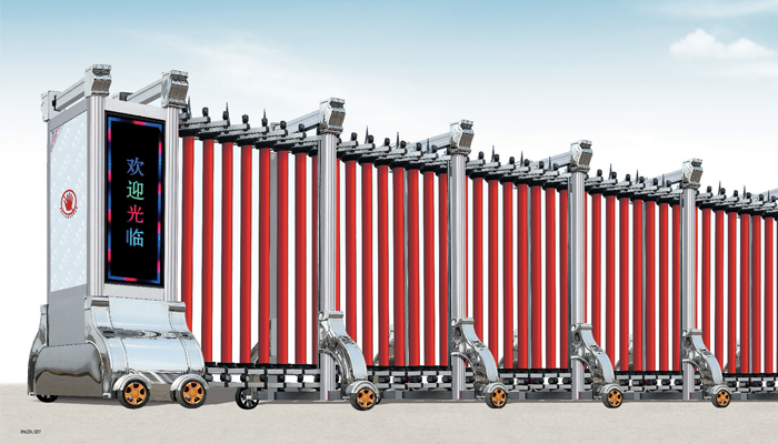 1、門體結構特殊,工藝制管進行折彎焊接定型制成門體。門體永不變形堅固耐用。門體用大小連桿連接而成伸縮門,大連桿連接型式為古幣梅花式,小連桿連接成菱型式,美電動門觀大方,堅固耐用。不銹鋼伸縮門電機無需風冷,散熱快,耐高溫,同時帶有過熱保護裝置。
